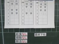 50分×5校時、給食あり、掃除なし、部活動なし、帰りの会終了14:55、生徒下校完了15:15です。