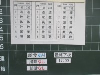 50分×5校時、給食あり、掃除なし、部活動なし、帰りの会終了14:40、生徒下校完了15:00です。