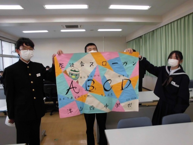 生徒会のスローガンは 「A(当たり前のことを) B(場に合わせて)C(ちゃんと) D(できる)」です。
