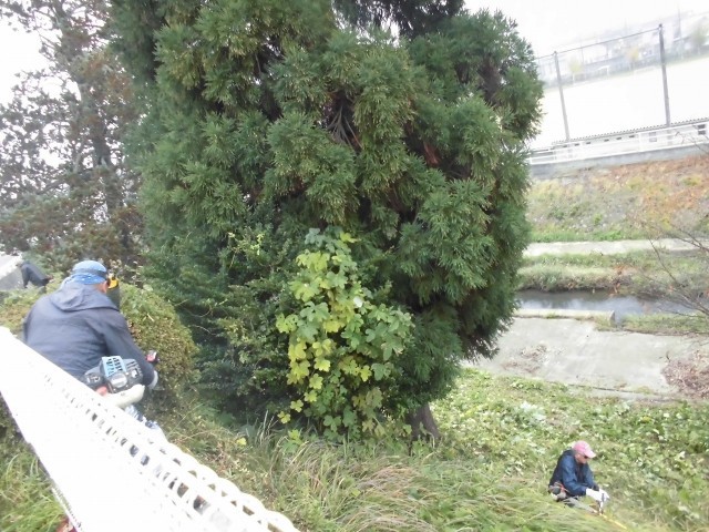 城西地区民生委員 あいさつ運動 と シルバー人材センターの方の草刈り