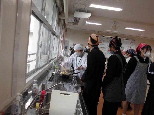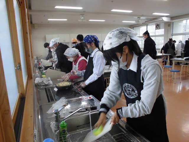 本日、2年生は調理実習で、津山の郷土食材を使ったそずり鍋を調理・試食しています。