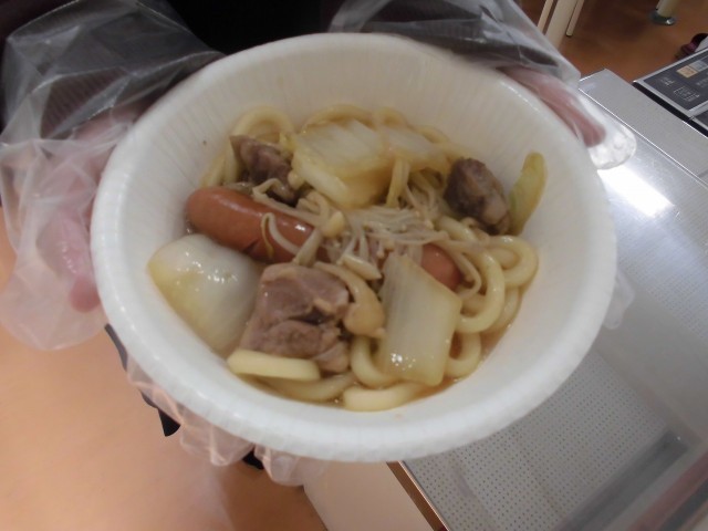 うどんやウインナーも入っておいしそうなそずり鍋ができました。
