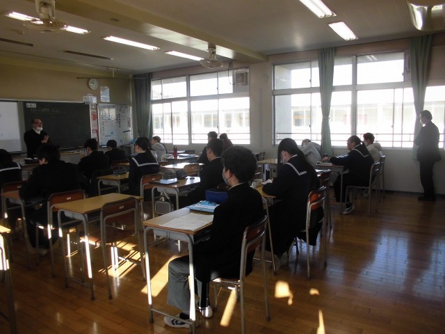 また、1枚目の写真は1年3組の英語、2枚目は1年2組の数学の様子です。