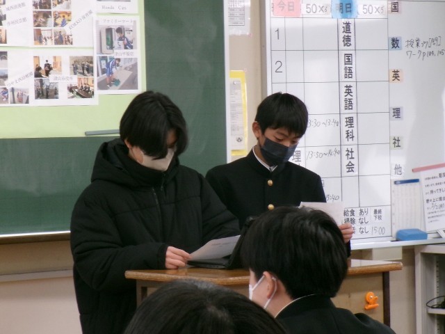 1年生は参観授業と学級懇談会、2年生は職場体験発表会と学年懇談(進路・修学旅行について)でした。