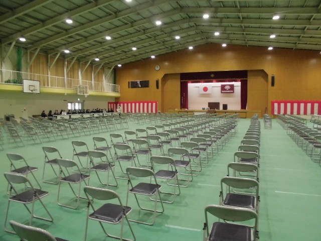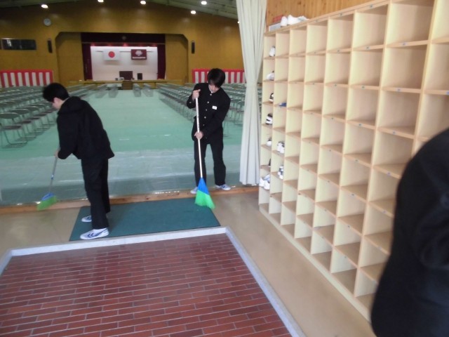 明後日の卒業式に向けて、1年生が午前中に1クラス1時間ずつ会場準備をしてくれました。