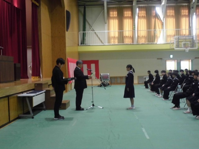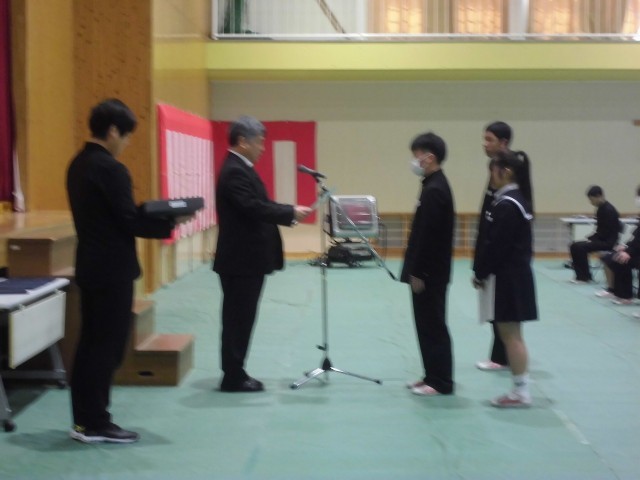 卒業式前日の今日、前日のリハーサルと表彰伝達が行われました。