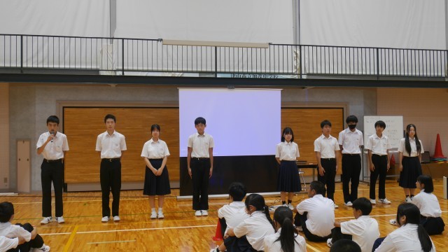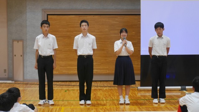 先日の前期生徒会の最後の専門委員会を受けて、前期最後の生徒集会を行いました。