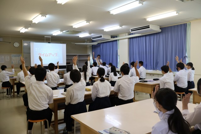説明を終えられた高校の先生方から、「素敵なあいさつができる生徒さんですね」、「真剣に話を聞いてくれて、気持ちよかったです」などの感想をいただきました。日頃から頑張っている3年生の様子が伝わったことと思います。
