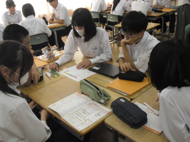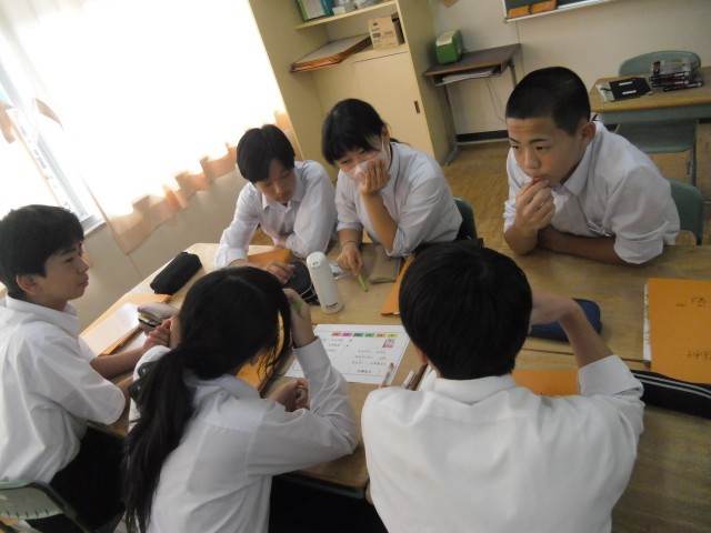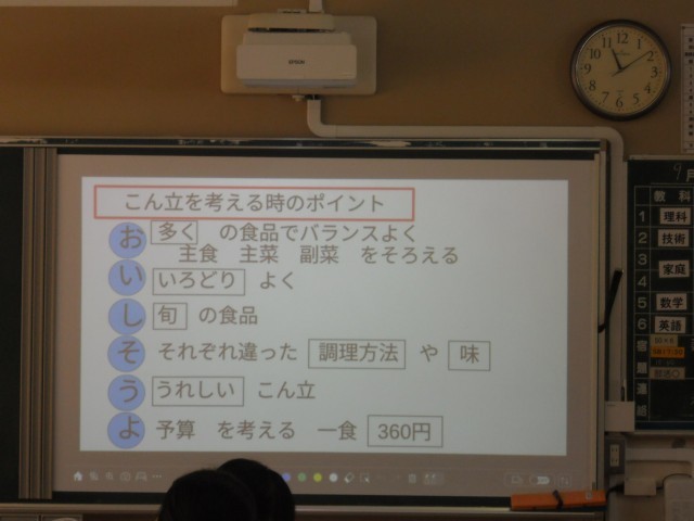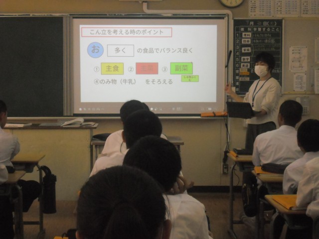 写真4~7枚目は、3・4時間目の2年家庭科(食育)の様子です。草加部食育センターの井上栄養教諭より、献立を考えるときのポイントなどを教えていただき、それぞれが給食献立を考えました。今後、「加茂中学校2年生の考えた献立」がメニューになるのを期待したいと思います。