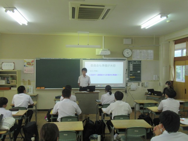 放課後の生徒会運営委員会では、「定例委員会の進め方」、「生徒会スローガン達成に向けた取り組みの企画方法」について大切にするポイントなどを、前生徒会長や前中央委員長から聞く「スキルアップ研修」を行いました。これまで経験してきたからこその内容で、新メンバーにはとても参考となるものでした。先輩からのアドバイスを、今後の活動に生かしてくれるものと期待します。