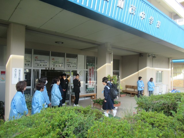 今朝は、民生委員・児童委員さんが、「あいさつ運動」に来校してくださいました。