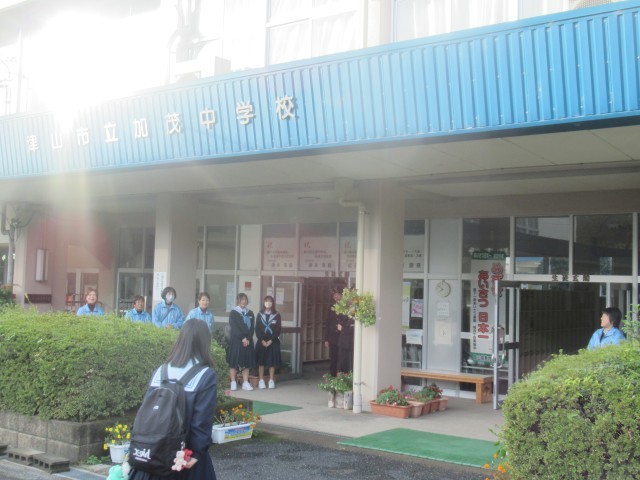 生徒会役員の生徒も一緒にあいさつ運動に参加しました。
