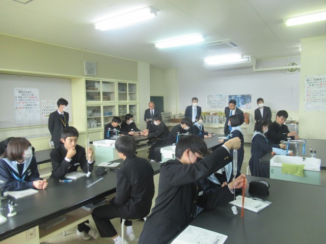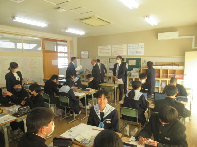 本日の午前中に、津山市の教育委員の皆様による学校訪問がありました。学校の取組の様子、授業や生徒の様子などを話題に、参観や協議を行いました。