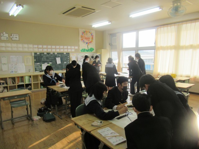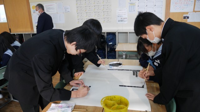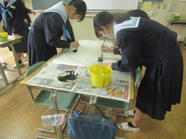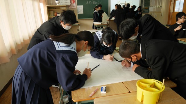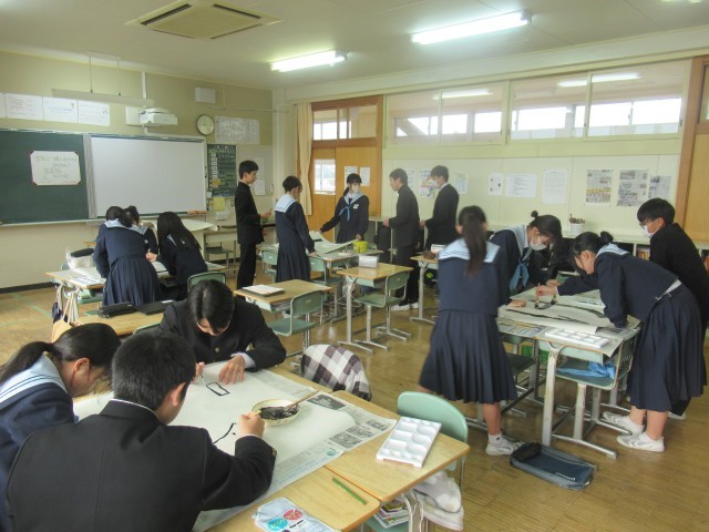 これから受験に向かっていく3年生を応援する会を予定していますが、そのときに1・2年生より応援メッセージを贈ります。そこで、1・2年生全員で、3年生への感謝と応援の気持ちを込めて、丁寧に作成しています。どんなメッセージになるのか楽しみです。