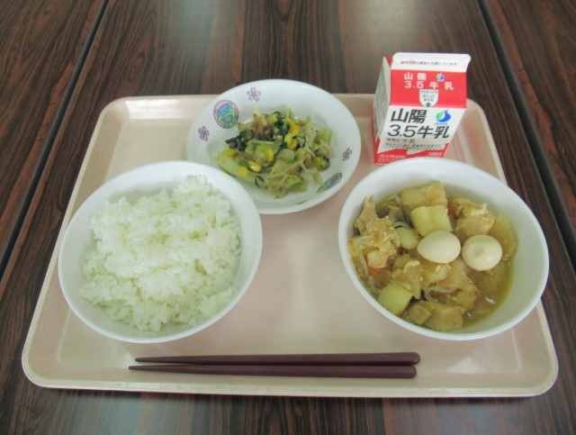 今日の給食のおでんには、『あつあげ、ひらてん、しらたき、つくね、こんぶ、だいこん、うずらたまご、じゃがいも、とりにく、にんじん』が使われていました。