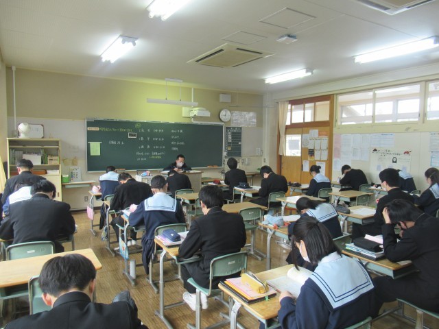 3年生は今日と明日の2日間、最後の定期テストとなる学年末テストです。写真は1時間目にテストに向けて最後の確認のために、各々が学習に取り組んでいる様子です。ドアを開ける音をたてるのが申し訳ないくらい集中した雰囲気でした。その後のテストでは教室の外から様子を伺いましたが、全員が見直しも含め、最後まで真剣に取り組んでいました。これからもまだまだ入試が続きますが、健康管理には十分に気をつけ、頑張って欲しいと思います。ガンバレ、3年生!