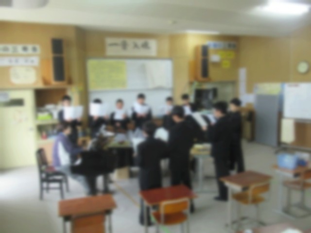写真5・6枚目は、1年音楽の授業で、合唱に取り組んでいる様子です。参観したときは、男女がパートに分かれて練習に取り組んでいて、しっかりとした歌声ででした。