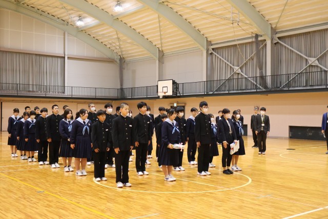 25日(水)に令和7年度修了式を行いました。さまざまな活動や行事に主体的に取り組み、そのたびことに「素敵な生徒たち、素敵な集団」と感じた令和7年度が修了しました。この春休みは少しゆっくりとしながらも、次なる令和8年度に向けて、最高学年や先輩となる自覚や準備をして、そして、新たな目標や決意をもって4月の始業式を迎えて欲しいと願います。