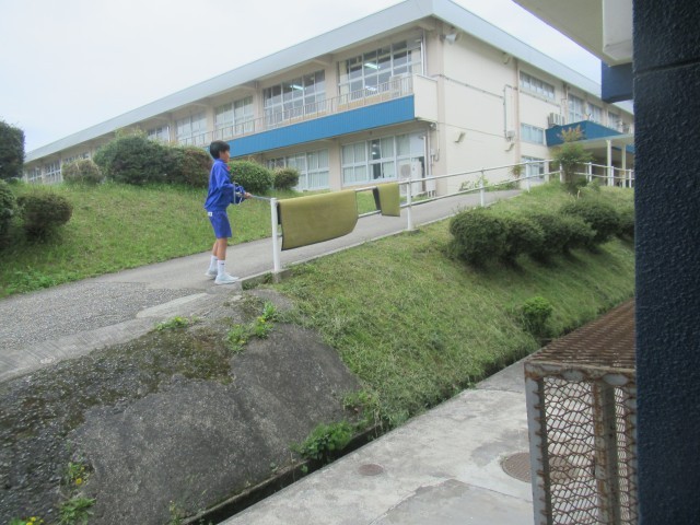 ※大会当日、本校グラウンドは選手等の関係者の駐車場となり、それに伴い体育館トイレを利用してもらいます。放課後、卓球部の生徒が早速のボランティアで、トイレ掃除をしてくれました。誰かのことを考え、行動できることは素晴らしいことです。ありがとうございました。