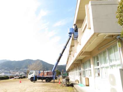 1月15日(金)から16日(土)にかけて、校舎の壁面・屋根などの点検が行われます。高所作業車による点検ですが、コンクリートの破片が落ちてくる可能性もあります。作業をしている近くには行かないように気をつけましょう。