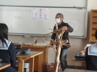 つやま郷土学として、地元の宇治先生をお招きして、1年生に「木のアートで加茂から世...