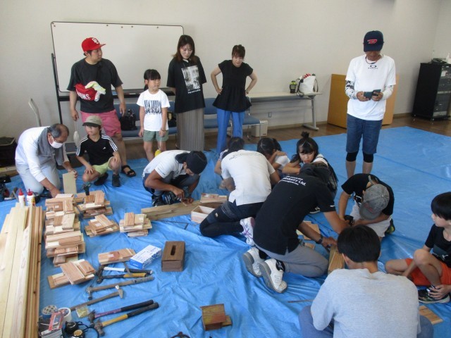 今年も夏休みの楽しい工作教室が開催されました。勝北地域の津山っ子を守り育てる会の役員・ボランティアの13人のスタッフで企画運営していただきました。