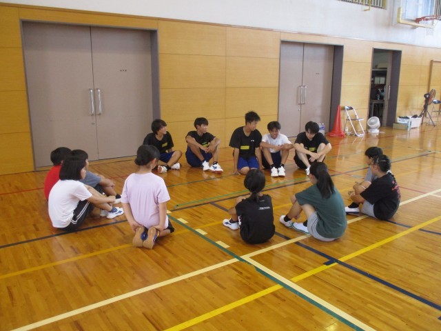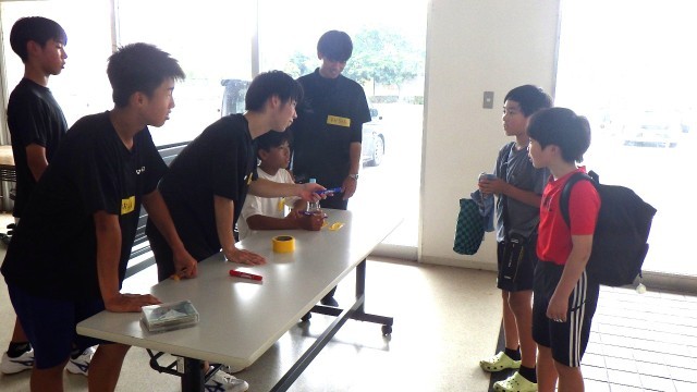 午前の勝ボラ勉強会に続き、午後から自主講座が開催されました。今年は7人の中学生メンバーが企画準備をしてきた「ラケットスポーツを楽しもう!」講座でした。