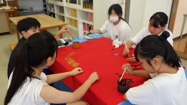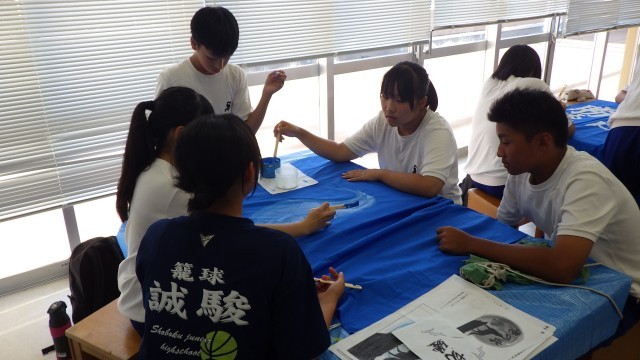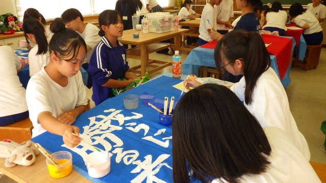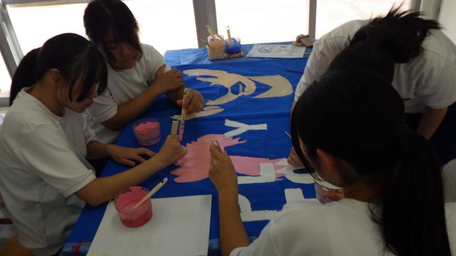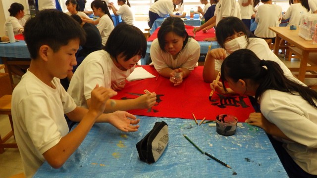 連日猛暑の中、放課後はクラスを盛り上げるシンボル旗の制作が本格的に始まっています。