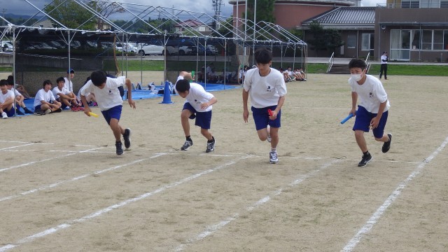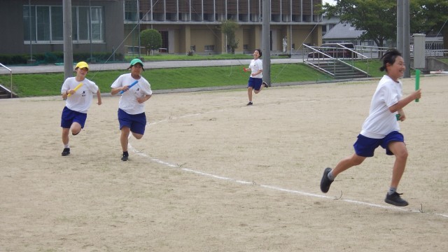 運動会練習も4日目、台風が迫る中ですが気温27度。最近にしては涼しい中で、クラス対抗リレーを完走しました。