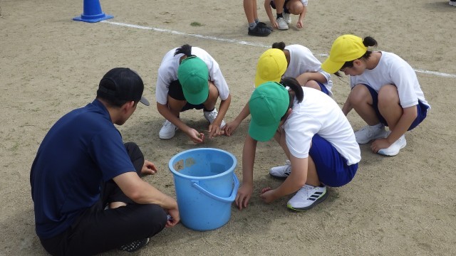 9月4日(木)運動会練習4日目 学年クラス対抗リレーとグラウンド整備をしています。