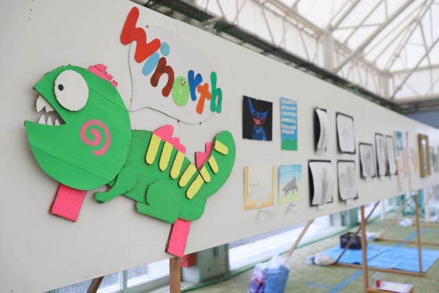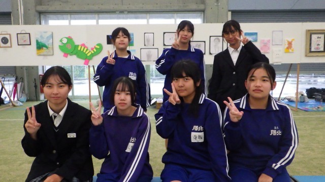 今回の交流会では「かざぐるま」を初めて出会った他中の文化部員と制作し、会場いっぱいに展示しました。県南の文化部からも参加があり、制作を通じて感性を磨き合うことができました。