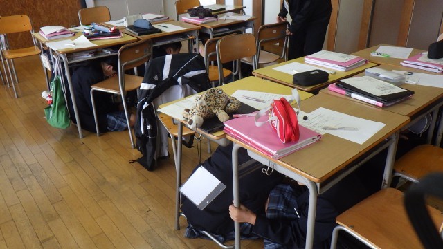 本日は、地震に対する備えの第一段階を体験するための、気象庁による「緊急地震速報の訓練の日」です。実際の速報音を校内に流して、地震の第一波に備えます。日々の訓練が当日の命を守る行動につながります。