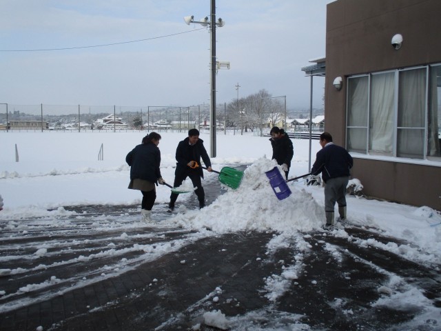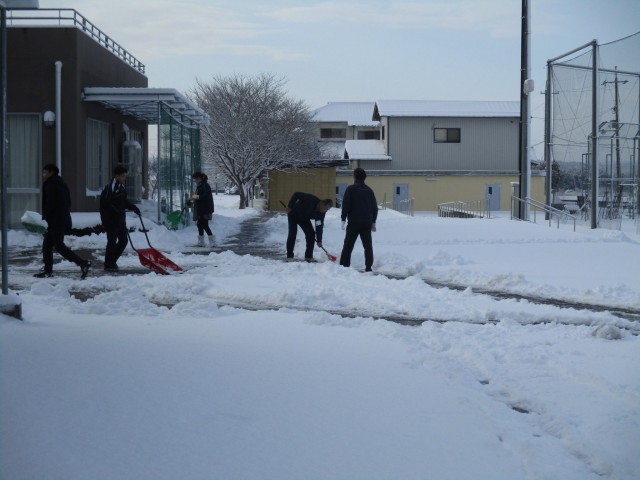 昨日からの降雪で、本日は始業時間を遅らせての1日スタートでした。教職員で雪かきをして登校準備をしていると、登校してきた生徒が手伝ってくれて通路がみるみるできあがりました。