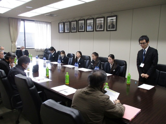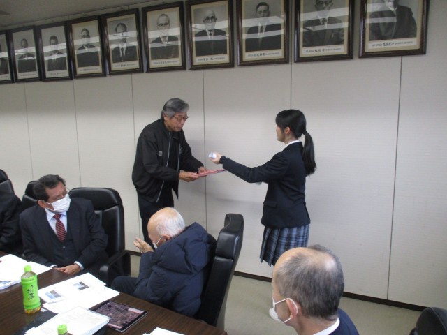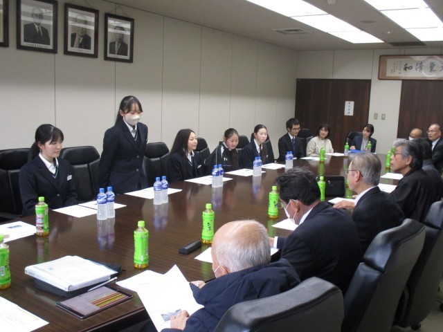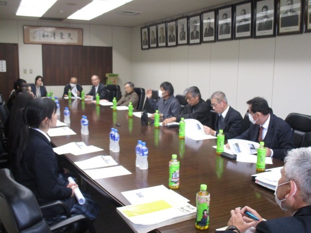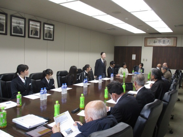 更に支部長さんからもたくさんの質問や課題解決に向けてのアドバイスもいただきました。代表生徒は会議室の雰囲気に緊張気味でしたが、支部長さんからの丁寧なお話や励ましを受けて充実感や今後の学習への意欲が高まっていました。実際に地域の課題を協議している会議に参加し自分たちの意見を真剣に受け止めてもらえた経験が、授業での学習が実社会とつながり理解が深まっていきます。