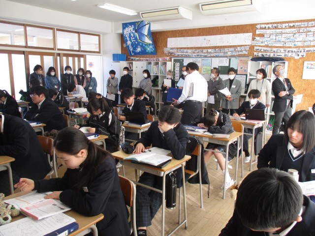 本日、民生児童委員の皆さんが授業参観で来校され、授業のめあてに向かって集中している様子や教員の指導の声かけ方に感心をされていました。さらに授業作品や認め合いメッセージ掲示を通して日頃の学校の様子も知っていただきました。