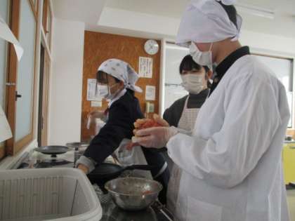 2月1日 2年2組 調理実習 公開日 2023/02/01 更新日 2023/02/01 お知らせ 今回のメニューは、ハンバーグ・ブロッコリーとツナと大根のサラダ・大根とあげの味噌汁です。支援ボランティアの方にアドバイスをいただきながらどの班も時間内に作りあげ、美味しくいただくことができました。