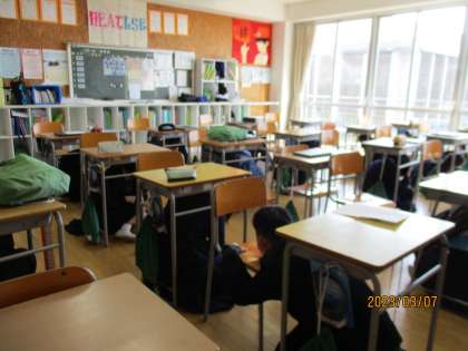 Jアラートとは、大きな災害や武力攻撃などの危険情報を全国民へ短時間で伝える警報です。本日は、弾道ミサイル着弾を想定し、避難訓練を全校で行いました。弾道ミサイルは、激しい爆風や破片などによって身体への大きな被害を受ける可能性があります。発射からきわめて短い時間で着弾することが予想され、時間も限られるので、速やかに避難行動をとる必要があります。