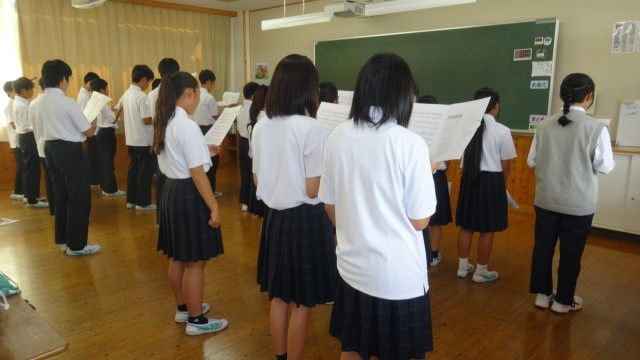 9月19日(金)の6時間目は、各クラスとも高徳祭の合唱の練習をしました。どのクラスも、生徒の大きな声が響き渡っていました。一斉の練習でしたので迫力もありました。合唱はクラスの状態がわかるバロメーターと言われています。当日がとても楽しみです。