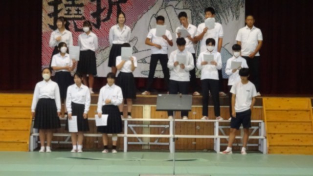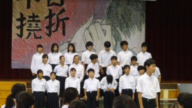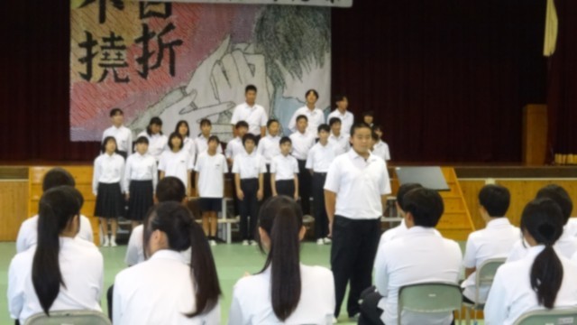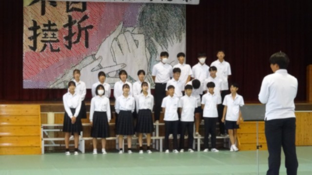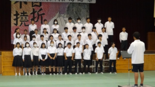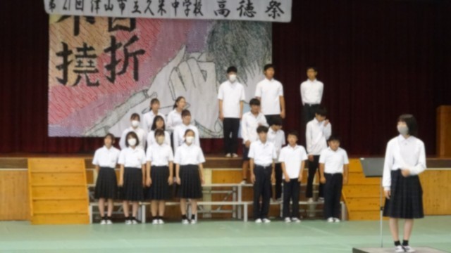 9月25日(木)の3~5校時目は、各学年とも合唱の仕上げを行いました。6校時目は、高徳祭のリハーサルを行いました。主に合唱の出入りと校歌と思いやりの歌の練習をしました。特に1年生の元気で大きな声が体育館に響いていました。2・3年生の合唱もきれいなハーモニーがとても良かったです。明後日はいよいよ本番です。