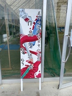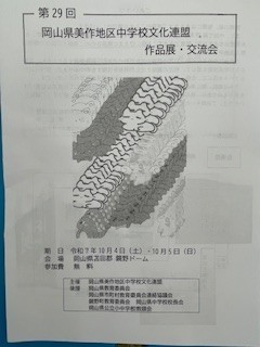 10月4日(土)・5日(日)は、美作地区文化連盟作品展と交流会が鏡野ドームで開催されました。今年度は、久米中学校からも総合文化部が参加しました。この連盟の活動には、文化部や美術の作品展示を中心に、美作地区から文化部に所属する中学生が参加します。また、「個性の花を咲かせよう」のテーマで交流活動も行われました。どの中学校からも素晴らしい作品が出品されていました。県南からの中学生の参加や作品の出品があり、交流会も大盛況でした。