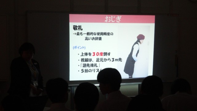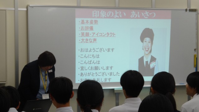 10月31日(金)の午後、株式会社マルイの高橋真理様を講師に迎え、2年生の職場体験講演会を行いました。高橋様からは、あいさつの重要性、適切な言葉遣い、身だしなみと基本マナーの実践、服装の基本、ルールを守る基本等について話されました。特にあいさつの重要性について語られました。生徒の皆さんは、高橋様とともに実際に声を出してあいさつの練習をしたり、おじぎの練習をしたりしました。11月12日(水)から14日(金)の3日間が本番になります。生徒の皆さんが高橋様から学んだことをしっかりと生かして職場体験に臨んでほしいと思います。高橋様ありがとうございました。