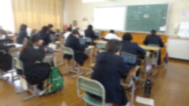 11月17日(月)の3時間目の授業の様子です。1・2年生は、2・3時間目は、岡山県学力定着状況確認テストを行いました。教科は、国語と数学でした。オンラインでタブレットを使って回答しました。3年生は、1組は音楽で、ギターのコード等についての復習を行いました。2組は、社会で三権分立、裁判所について学習しました。生徒は裁判について興味や関心が高く、先生に質問をしていました。1・2年生は、今回のスト結果に基づき、自分の苦手な分野を復習したり、学習習慣の見直しをしたりします。生徒が「わかった」「楽しかった」という授業づくりを今後も進めていきます。