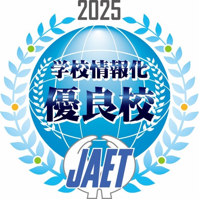 この度、久米中学校が、日本教育工学協会(JAET)から、「学校情報化優良行」として認定されました。これは、「情報化の推進体制」を整え、「教科指導におけるICT活用」「情報教育」「校務の情報化」に積極的に取り組んている学校が認定されるものです。本校では、ICTを各教科で積極的に活用し、生徒にとって、「よりわかる、楽しい授業」を目指して取り組んでいます。今後も教育の情報化を自己評価し、総合的に情報化を進めていきたいと思います。