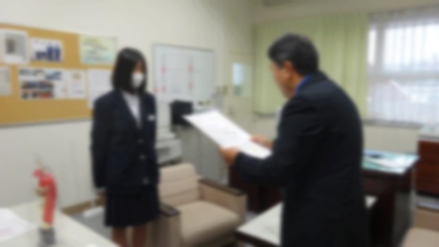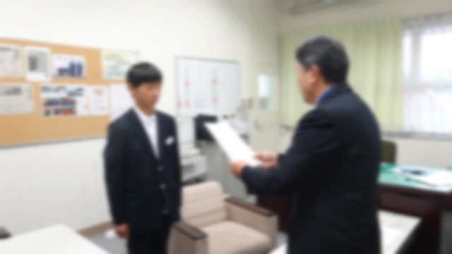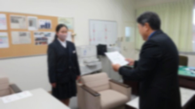 12月24日(水)は、2学期の終業式でした。生徒の皆さんの体調を考慮してオンラインで行いました。校長講話を以下抜粋して掲載します。「・・・2学期は、運動会や高徳祭、3年生の保育実習、2年生の職場体験ね1年生の校外学習などたくさんの行事があり、本当に皆さんよくやったと思います。それでは、2学期を振り返って2つお話しします。1つ目は、生徒会や専門委員会の活動です。10月に生徒会の改選があり旧会長から新会長へとバトンタッチされました。現3年生が残した伝統を今の役員が引継ぎ大変頑張ってくれています。各専門委員会でも委員長を中心にしっかりと取り組んでくれています。自分たちの手で学校を創っていこうという気概がいろいろな取組に表れています。学級委員会の学級課題の解消に向けた取組、体育委員会の球技会、美化委員会の環境整備、図書委員会のしおり作成、生徒会本部の久米中学校イメージアップのビデオ制作、など今後の活動を期待しています。2つ目は久米中学校の生徒の皆さんの活躍についてです。この後紹介がありますが、運動面はもちろんですが、絵画・習字・標語・作文・科学研究・などたくさんの分野でたくさんの皆さんが立派な成績を残しました。本当におめでとうございました。報道により皆さんの活躍は地域の人からも賞賛されています。次に冬休みと、今後の皆さんの生活についてお話をします。さて、冬休みは約2週間という短い期間です。年末年始だからといって、油断するとあっという間に過ぎてしまいます。特に入試を間近にひかえた3年生は、この休み中に努力するかしないかで大きく変わってきます。三者懇談会では、自分の進路について確認されたと思います。自分が目指す高校が今のままだと厳しいと言われた人もいるでしょう。しかし、頑張れば、まだ相当な成果を上げることができます。1・2年生の皆さんも高校入試の調査書には、1・2年生の成績も反映されます。冬休みの課題にしっかりと取り組み、充実した日々を送ってください。、冬休みは、家の手伝いや家族での団欒など普段ではあまりできないようなことができるよい機会でもあります。ぜひ家族の一員として、手伝いなども積極的に行ってください。一方で、路面の凍結によるスリップ事故、交通事故に注意してください。また、インフルエンザや新型コロナの感染もずっと続いています。手洗い・消毒・換気等に十分に気をつけて過ごしてください。各学年ともインターネットやSNS等の情報モラルについて学習しています。しかし、全国的にSNS等に誹謗中傷の書き込みや不適切な画像等をアップロードするなどのトラブルが起こっています。勝手に画像を載せたり、加工したりしない、個人情報を流さない、不適切な書き込みをしない、他人のアカウントを使わないこと等は絶対に守ってください。タブレットの端末ですが、これは貸し出されているものです。学習以外の利用はできません。適切な使用をしてください。クリスマスやお正月で、お酒を飲んだり、たばこを吸ったり、バイクに乗ったりすることは絶対にしないでください。最後に、生徒の皆さんの中には、色々な悩み事や心配な事、辛い事がある人がいるかもしれません。いじめのアンケートや教育相談も実施しましたが、皆さんが一人で解決できない場合には、どうか相談できる人や関係機関に相談をしてください。必ず今の苦しい状態からは改善することができると思います。また、友だちから相談を受けた場合にも、自分達で解決できない場合には、相談できる人に相談をしてほしいと思います。なるべく早く相談をしてください。ご家族、周りの大人や、先生や先輩等いるかと思います。必ずサポートしてくれると思います。伝えたり、訴えたりすることは、とても大切な事です。私たちの命は一つしかありません。自分の心と体、相手の心と体を大切にしてほしいです。それでは、1月7日の始業式に元気な姿で皆さんと3学期のスタートを切ることができることを願って私の話を終わります。 皆さん、良い年をお迎えください。」次に、生徒指導主事の先生から、ルールやマナーを守って生活すること、生活リズムを大切にしようとのお話がありました。その後表彰式が行われました。