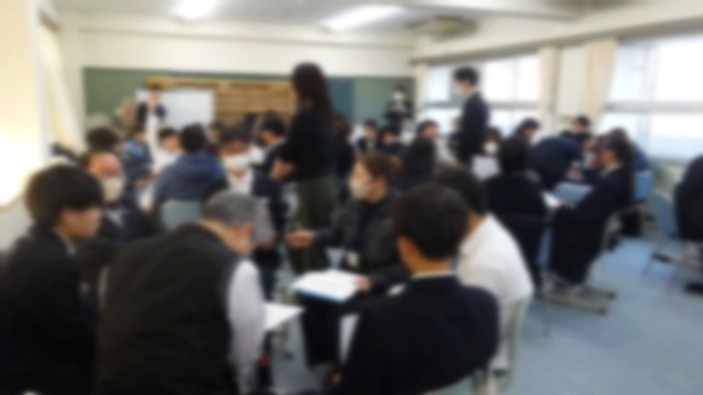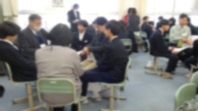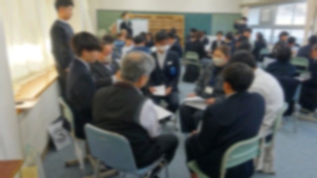 1月16日(金)の午後、2年生対象の「中学生こみゅ」を行いました。「中学生こみゅ」とは、「こみゅ」とは、コミュニケーション&コミュニティの略したものです。人と出会い、つながることで人生を豊かにする場という意味です。地域の大人の方々との対話の中で、これからの自分の生き方につながる気付きが得られることを期待して企画されたたものです。様々な立場の大人の方々約30人に、本校に来校していただきました。2年生の皆さんは、様々な立場の大人との対話を通して、色々な価値観、生き方があることを知り、進路についての選択肢の幅を広げ、将来への見通しを持つことができるようになったのではないかと思います。また、自分の考えを表現して、周囲から共感や承認されることを通して、自分に自信をもつことができるようにもなったのではないでしょうか。2年生の皆さんは、最初は緊張していましたが、だんだんと「自分のいいところ」「将来の夢やしたいこと」等について自分の言葉で大人の方々にしっかりと語ることができました。予定の時間が足りないくらいでした。また、どのグループの大人も生徒の皆さんも、素敵な笑顔で過ごす時間を共有することができました。関係の皆様、大変お世話になりました。ありがとうございました。