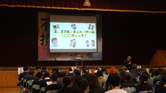1月27日(火)の午後から、令和8年度入学説明会を行いました。寒い中でしたが、入学予定者の皆さんと保護者の皆様は、中学校の各担当からの説明に、熱心に耳を傾けておられました。その後、津山市立南小学校の本多正寛先生を講師に迎え、久米ブロックPTA連絡協議会主催で、「親子で学ぶ家庭講座」「揺れ動く思春期・正しいメディアとの付き合い方」と題して、ワークショップを含めた講座を開催しました。SNSの適切な使用や、スマホ・ゲーム依存等について、親子で楽しく学習することができました。入学予定者の皆さん、4月の入学式での再会を在校生・教職員一同、楽しみにお待ちしています。なお、本日の入学説明会の資料は、配布文書に掲載しています。
