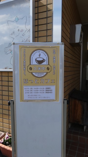 2月18日(水)の朝は、民生委員・児童委員の皆様によるあいさつ運動がありました。今年度何度も足を運んでいただいており、生徒の皆さんも普段通り、委員の皆様と「おはようございます」のあいさつを交わしていました。午後からは、恒例の「ほっとカフェ」がありました。今回は、新たな企画として、昼休みの時間を5分延長し、生徒のボランティアを募り行いました。生徒ボランティアの皆さんは、来室した方に手際よくお茶やコーヒーを入れていました。生徒も地域の方とも随分顔見知りとなり、会話もはずんでいました。