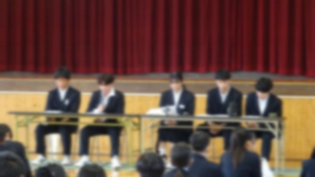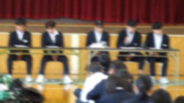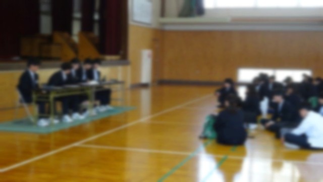 3月23日(月)の学活終了後に体育館で臨時生徒総会が開かれました。「頭髪に関する校則の改定」についての話し合いでした。生徒会長から、「頭髪の校則は、私たちの学校生活に関わる大切なルールの一つです。しかし、時代の変化や一人一人の考え方の多様化により、今の校則が本当に私たちに合っているのかを見直す必要があるのではないかという声が上がりました。この総会は、ただ意見を聞くだけの場ではなく、自分たちの学校を自分たちでより良くしていくための大切な機会です。それぞれが自分の考えを持ち、他の人の意見にも耳を傾けながら、より良い結論を目指していきましょう。」と臨時総会の目的が話されました。今回は、女子生徒のお団子ヘア(髪をまとめたヘアスタイル)について、ヘルメットを被ることができる位置でのお団子ヘアについての検討でした。この意見が出されるまでの経過が生徒会本部から説明され、大多数の生徒の皆さんが賛成でした。今回の臨時総会で、生徒の皆さんが校則や決まりの改定の手順を学んだと思います。今後も自分たちが不合理であると感じた校則や決まりについては、意見を出して議論し、より良いものに変えていくことが大切であると感じました。