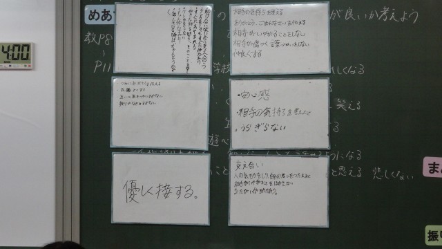 1年生は「友達とは何か」をテーマに学習しました。授業では、教材をもとに登場人物の気持ちを考えながら、「友達とはどんな存在なのか」「自分は友達に対してどのように関わっているか」について意見を出し合いました。「楽しいときだけでなく、困ったときに声をかけてくれる人が友達だと思う」「相手のことを考えて行動することが大切だと感じた」といった発言がありました。また、「自分は友達に頼ることはあっても、支えることができているだろうか」と、自分自身の在り方を振り返る姿も見られました。友達関係において大切なこととして、「相手の気持ちを考えること」「違いを認めること」「困っているときにそっと寄り添うこと」など、多くの気付きが生まれた時間となりました。今日の学びを通して、生徒たちがこれからの学校生活の中で、より良い人間関係を築いていくことを願っています。友達を大切にする心が、日々の言動として表れていくことを期待しています。